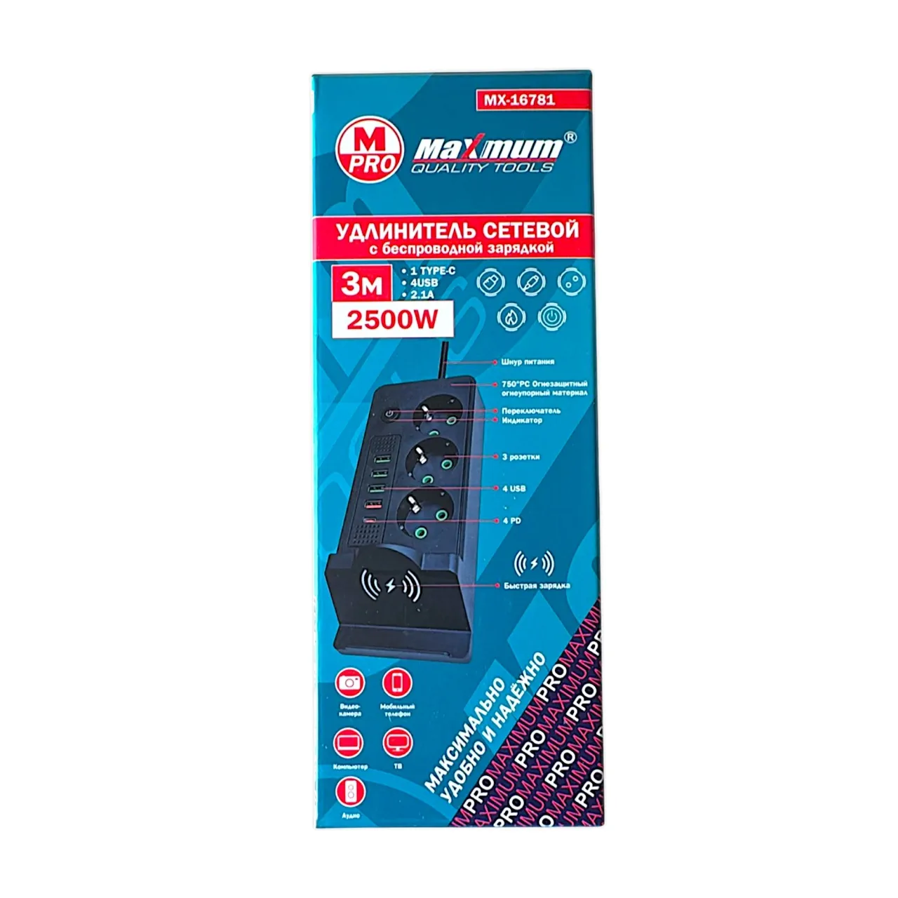 Колодка каучуковая на 3 розетки с защитными красными крышками, IP44,16A, 3500Вт "MAXIMUM" MX 17320