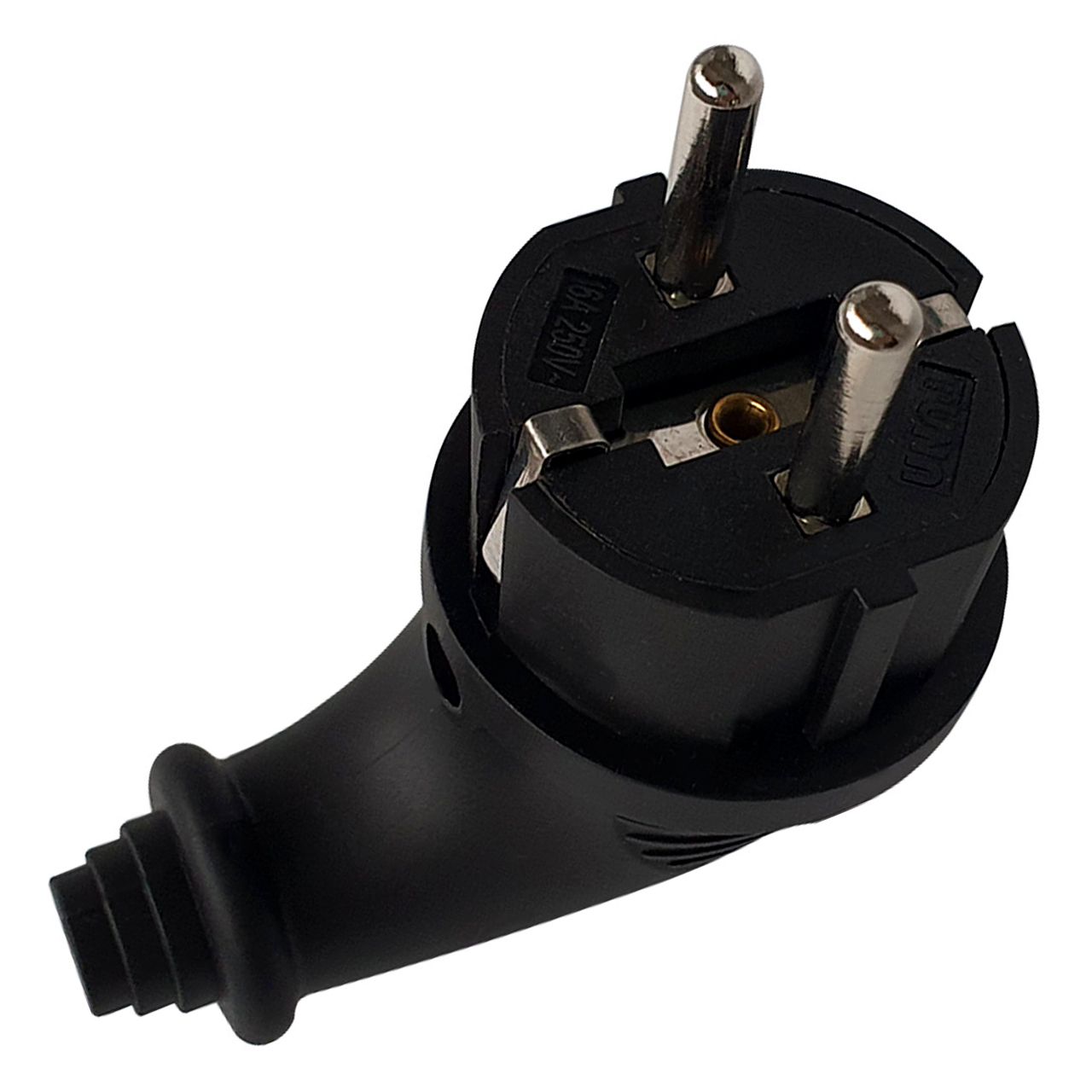 Электрическая угловая вилка с заземлением выполнена из каучука и предназначена бля бытовых приборов. Изделие обладает высокой термостойкостью и невосприимчивостью к ультрафиолету. Угловая вилка с заземлением - электротехнический элемент для сбора удлинителя или ремонта любого бытового электроприбора. Угловая конструкция очень удобна в применении, особенно при подключении к стационарной розетке в местах с ограниченным пространством.