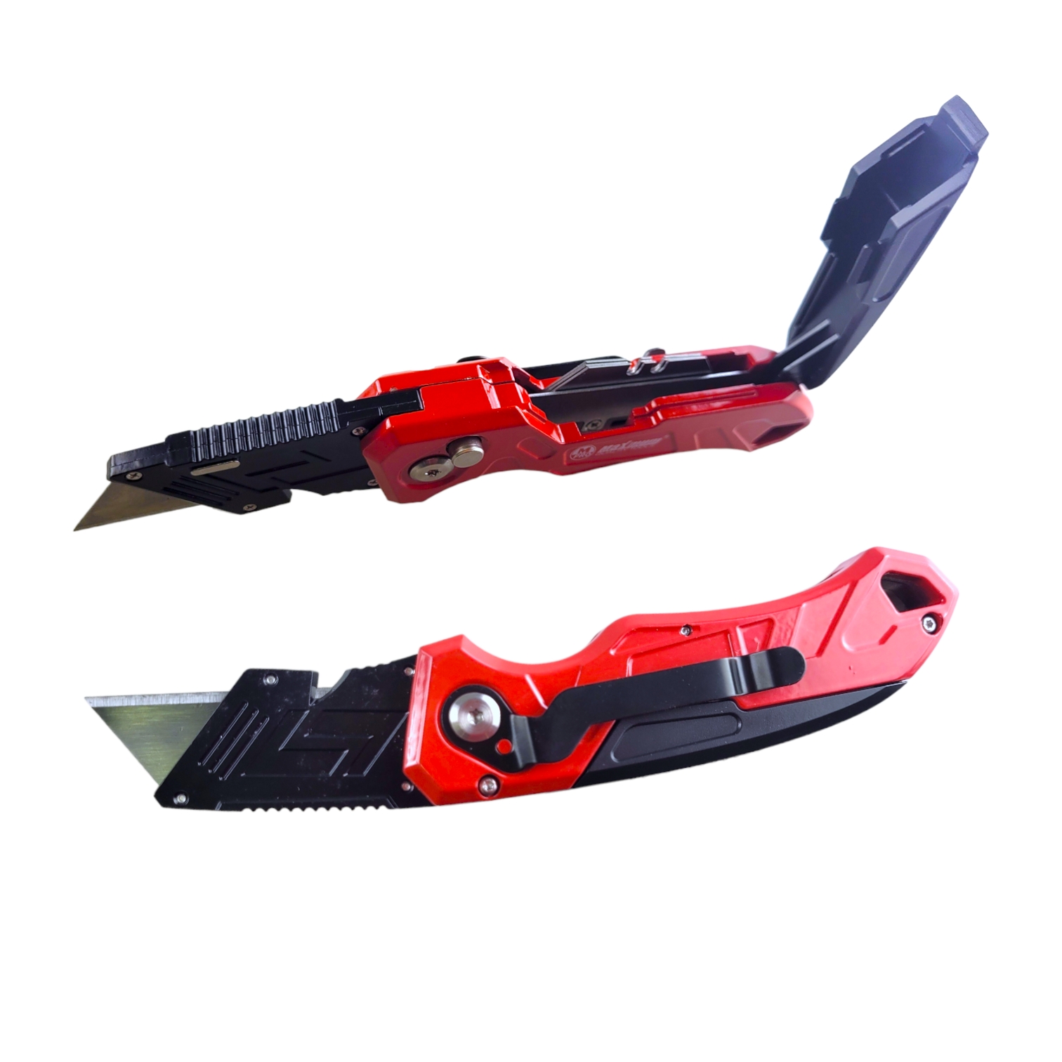 Нож строительный/канцелярский с кнопкой для быстрой смены угла резки и системой Quick Change для быстрой смены лезвий от "Maximum Quality Tools" предназначен для разрезания гипсокартона, бумаги, обоев, картона, ковролина, линолеума и т.п. Стильный металлический корпус дополнен резиновыми вставками и отсеком для запаски.