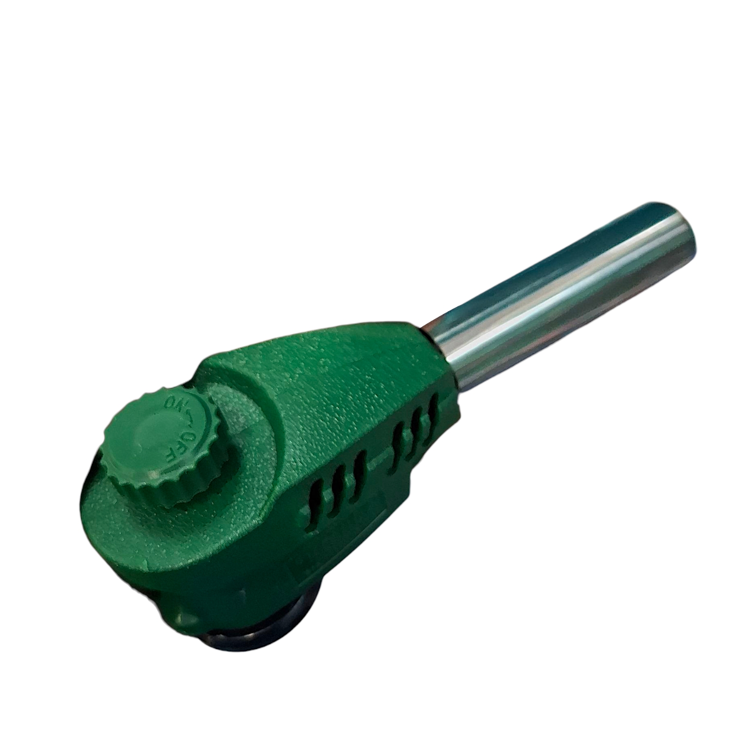 Горелка оснащена пьезоподжигом и вентилем тонкой регулировки пламени. Для работы потребуется балонн на основе газа пропан/бутан.