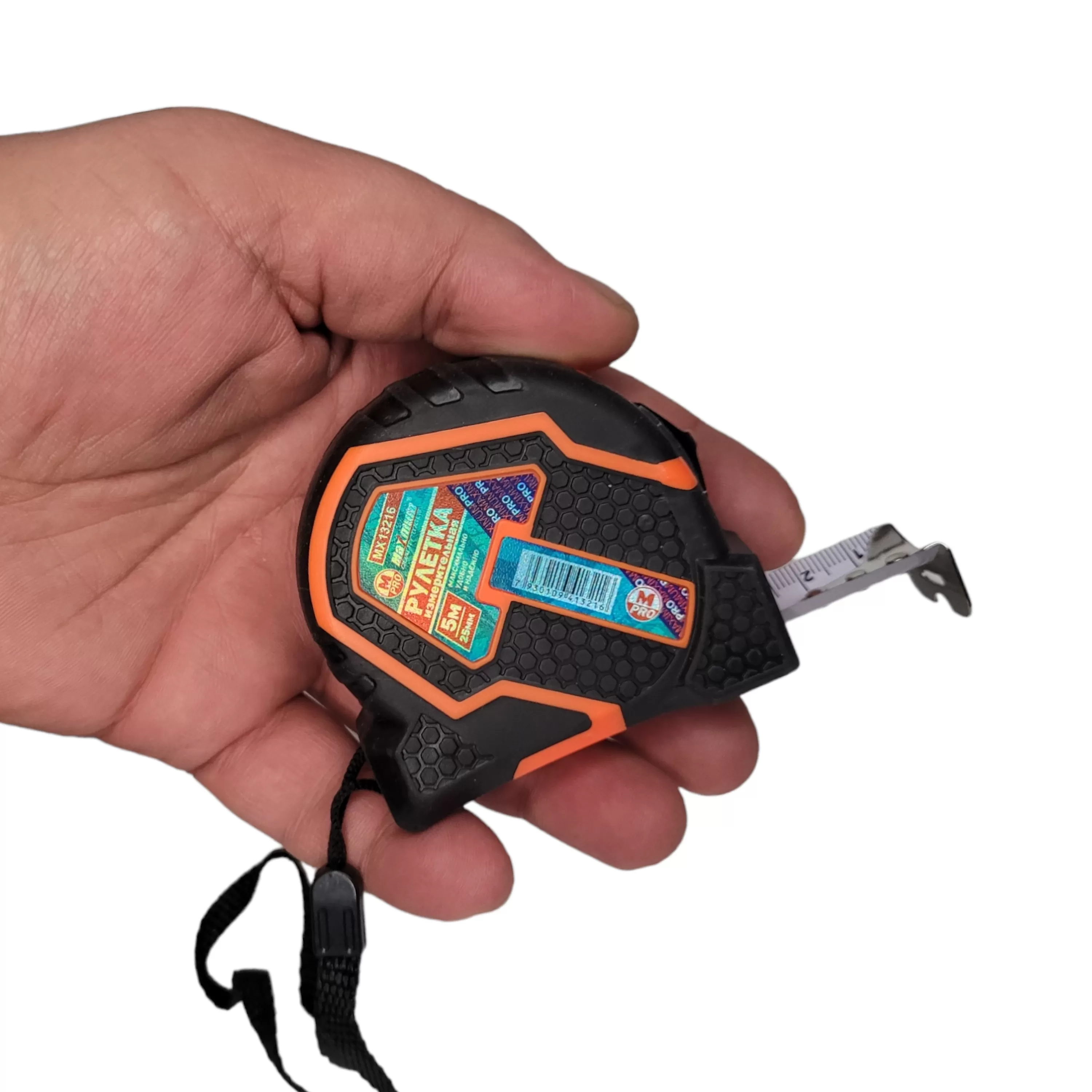 Удароппочная рулетка на 5 метров от "MAXIMUM QUALITY TOOLS" оснащена автофиксатором и стальной гибкой лентой шириной 25 мм. Стильный яркий дизайн сочетается со специальными ребристыми резиновымы элементами, которые предохраняют корпус при падении. Кнопка фиксации не даёт инструменту скручиваться обратно. На задней панели рулетки создана гибкая металлическая клипса, которая позволяет фиксировать инструмент на поясе. Лента из металла выдерживает повышенные нагрузки при эксплуатации. На линейку наносится дополнительное покрытие, которое защищает поверхность и исключает стирание шкалы.