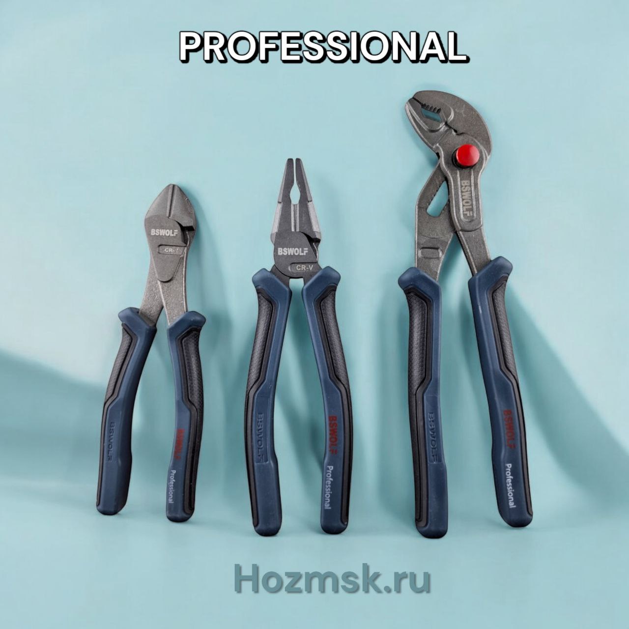 Набор шарнирно-губцевых инструментов CRV, бокорезы 180 мм, плоскогубцы 200, клещи 250, "Professional