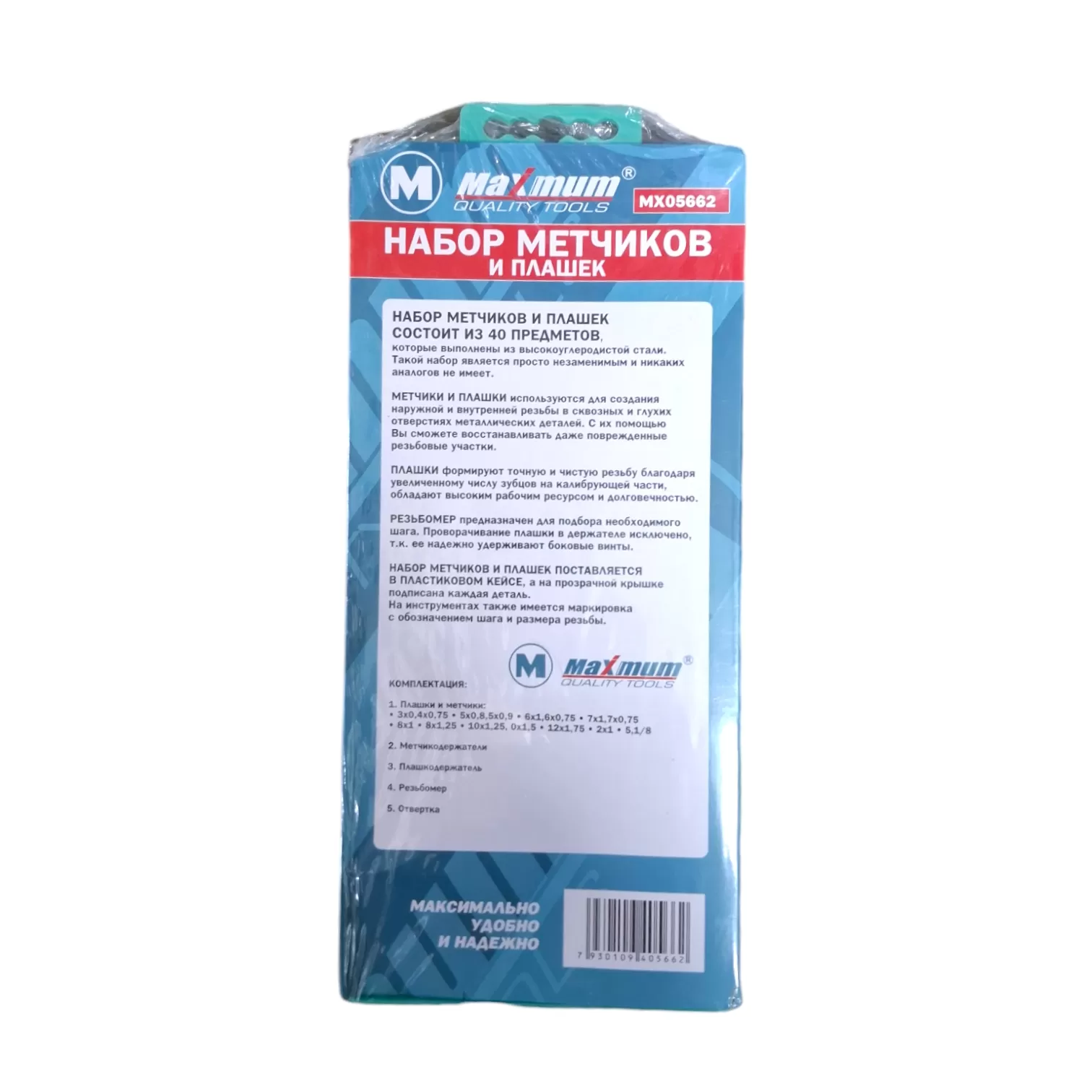 Набор метчиков и плашек состоит из 40 предметов, которые выполнены из высокоуглеродистой стали. Такой набор является просто незаменимым и никаких аналогов не имеет.