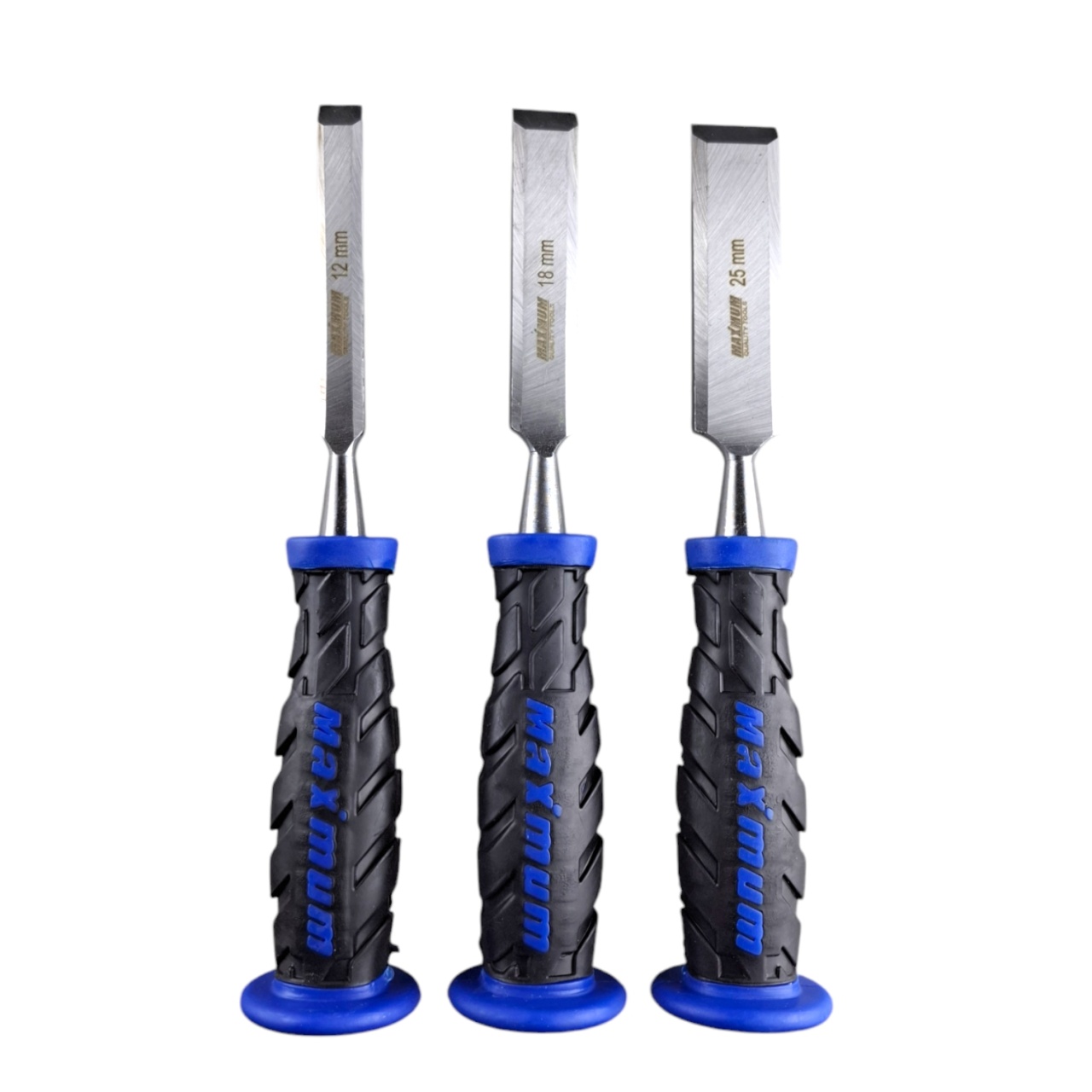 Набор стамесок из 3 предметов "MAXIMUM" предназначен для проведения столярных работ, включая первичную обработку, выборку пазов и очистку углублений деревянных конструкций. Подходит как для бытовых, так и профессиональных работ.