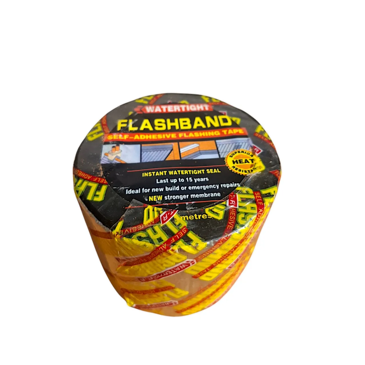 Гидроизоляционная битумная лента 10 см х 5 м клеится на любые поверхности: металл, шифер, рубероид, пластик.