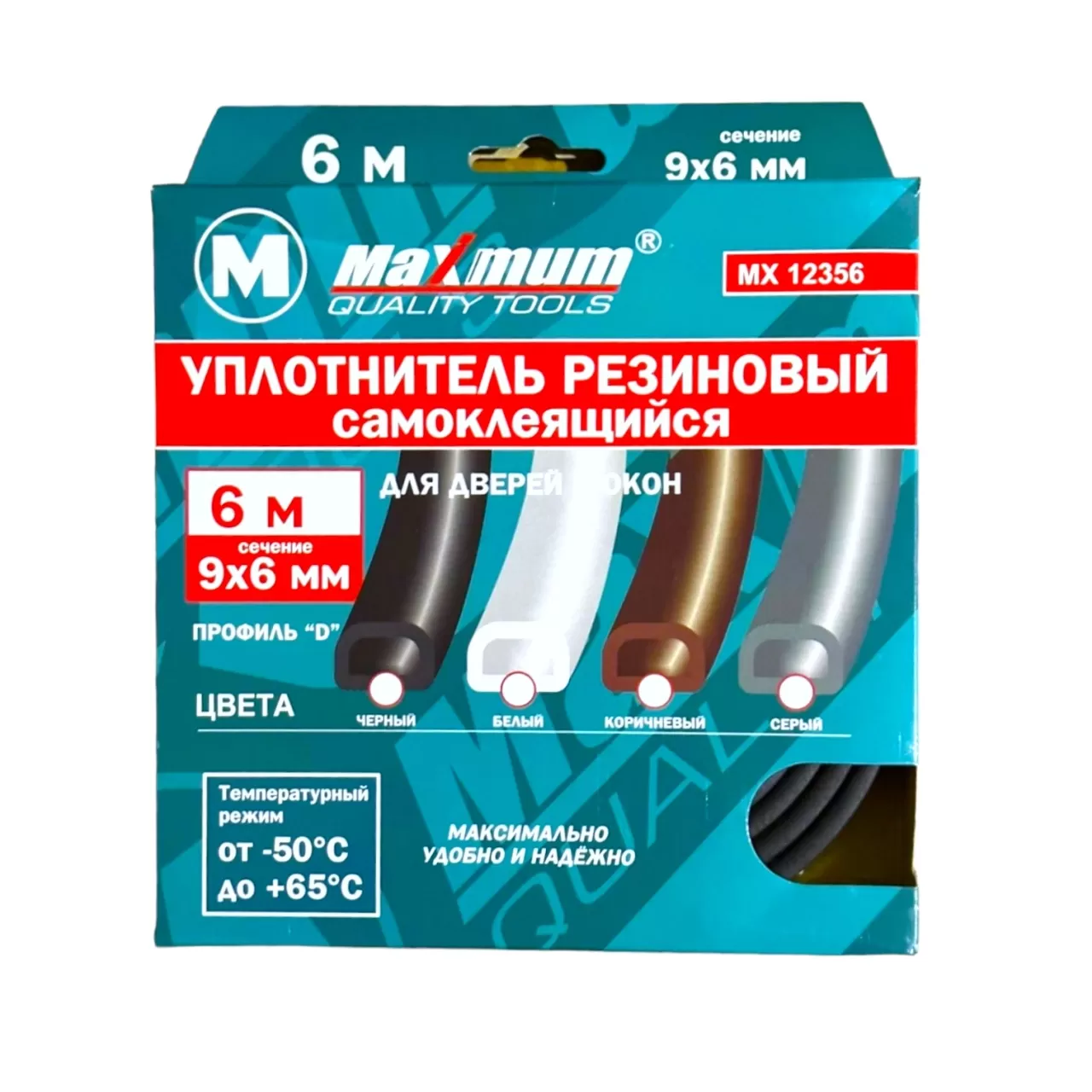 Уплотнитель резиновый самоклеящийся большой 2x50 м,сечение 9х6мм,профиль "D",белый,«Maximum» MX11410
