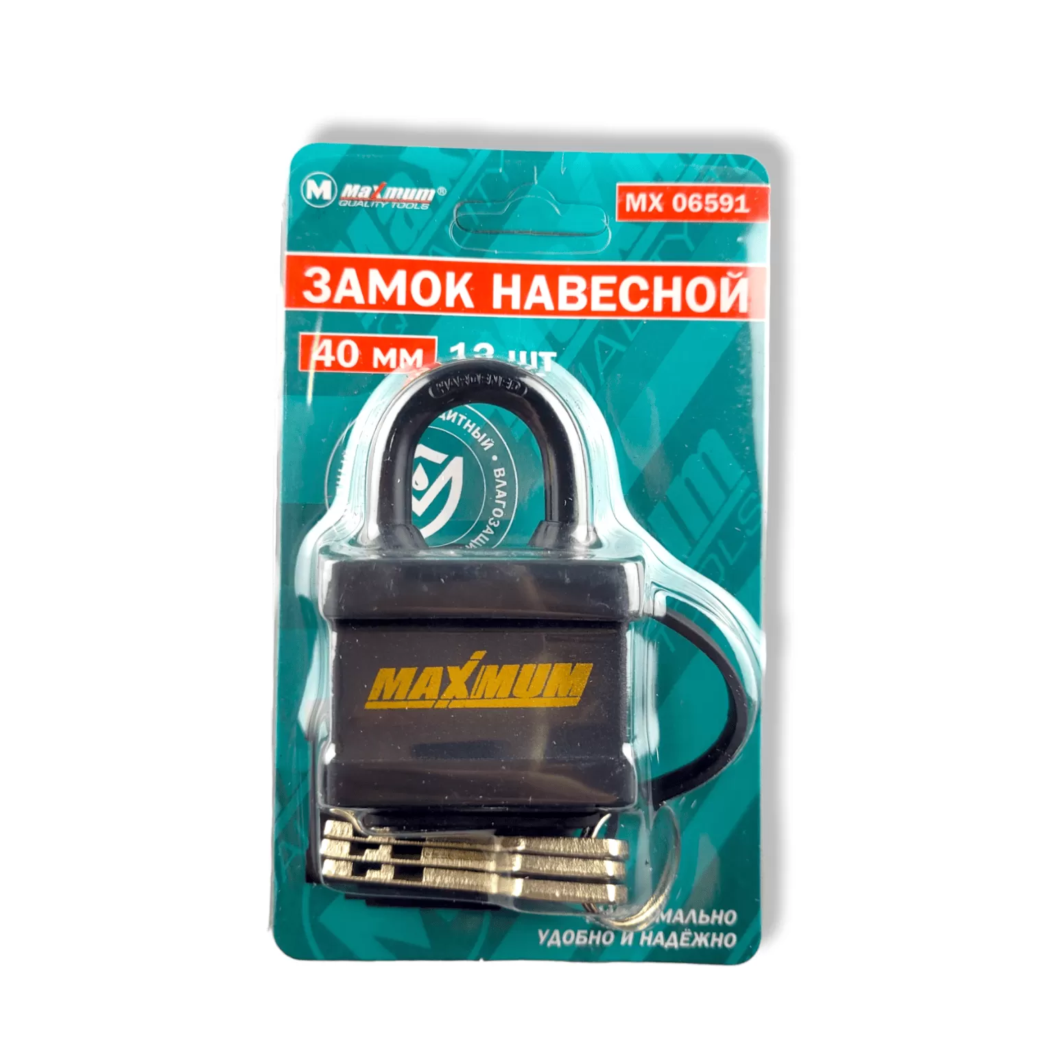Замок навесной прорезиненный 40 мм, "MAXIMUM" (2097)