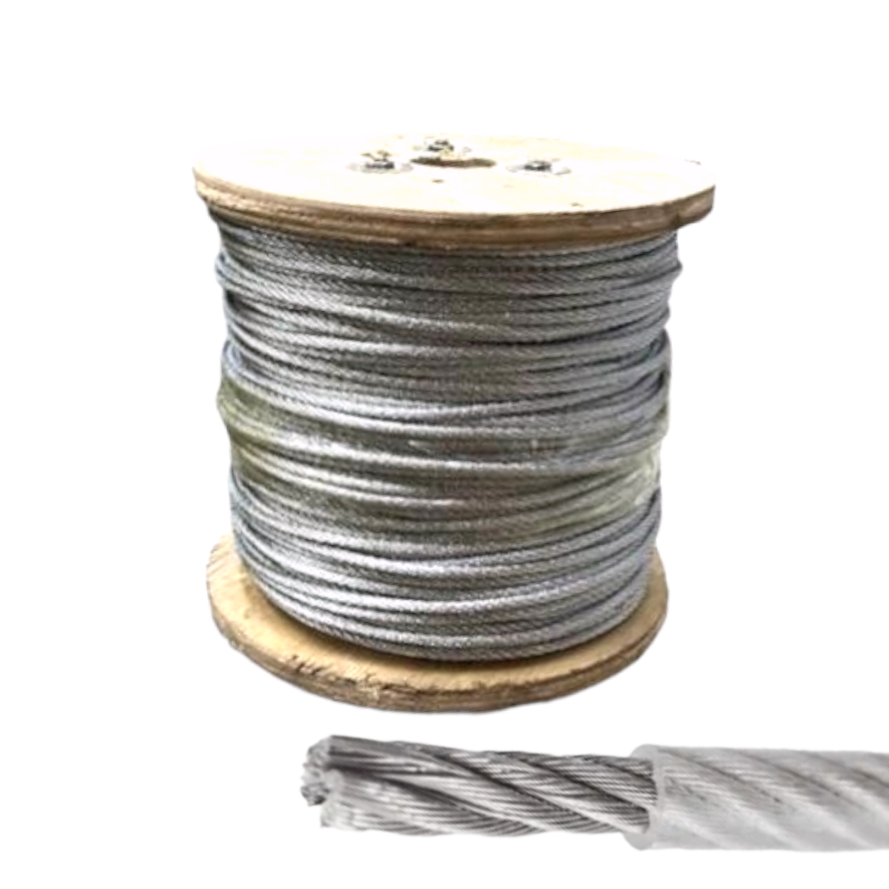 Стальной трос с оплеткой из поливинилхлорида 6 мм диаметром 200 погонных метров поставляется в бухте. Оцинкованные канаты в оболочке (ПВХ) благодаря своей прочности и устойчивости к большим нагрузкам используются как стяжной или буксировочный ремень, а также в качестве траверс для крепления подвесных конструкций, захвата грузов в прицепах или авто, рекламных баннеров, дорожных знаков, антенн, такелажа, подъемных устройств. Канат оцинкованный в прозрачной оболочке ПВХ 0,4 мм используют и в быту для монтажа теплиц и установки систем капельного полива, при возведении временных сооружений (шатров, тентов и пр.), для крепления замков.