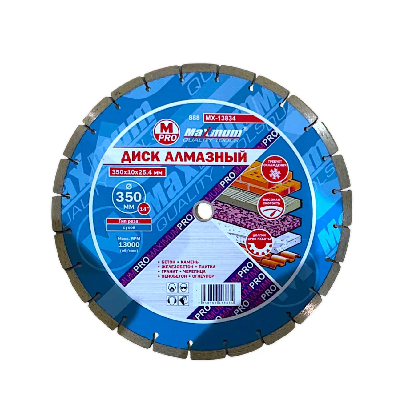 Диск алмазный по бетону 350×10×25,4мм, 888, сухой рез,13000 RPM, "MAXIMUM" MX 13834