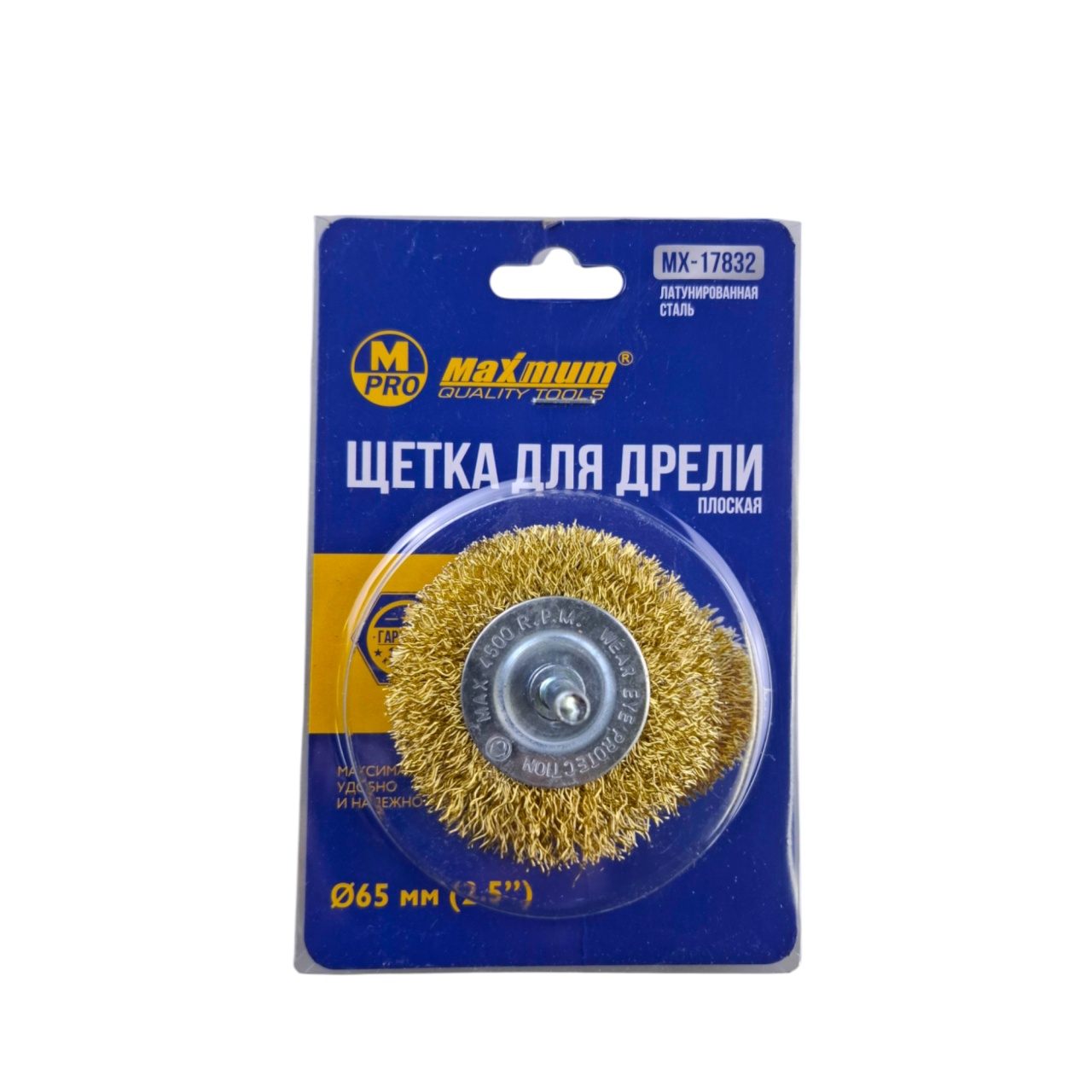 Щетка для дрели плоская 65 мм, 2,5 ", латунированная, волнистая проволока,"MAXIMUM" MX 17832